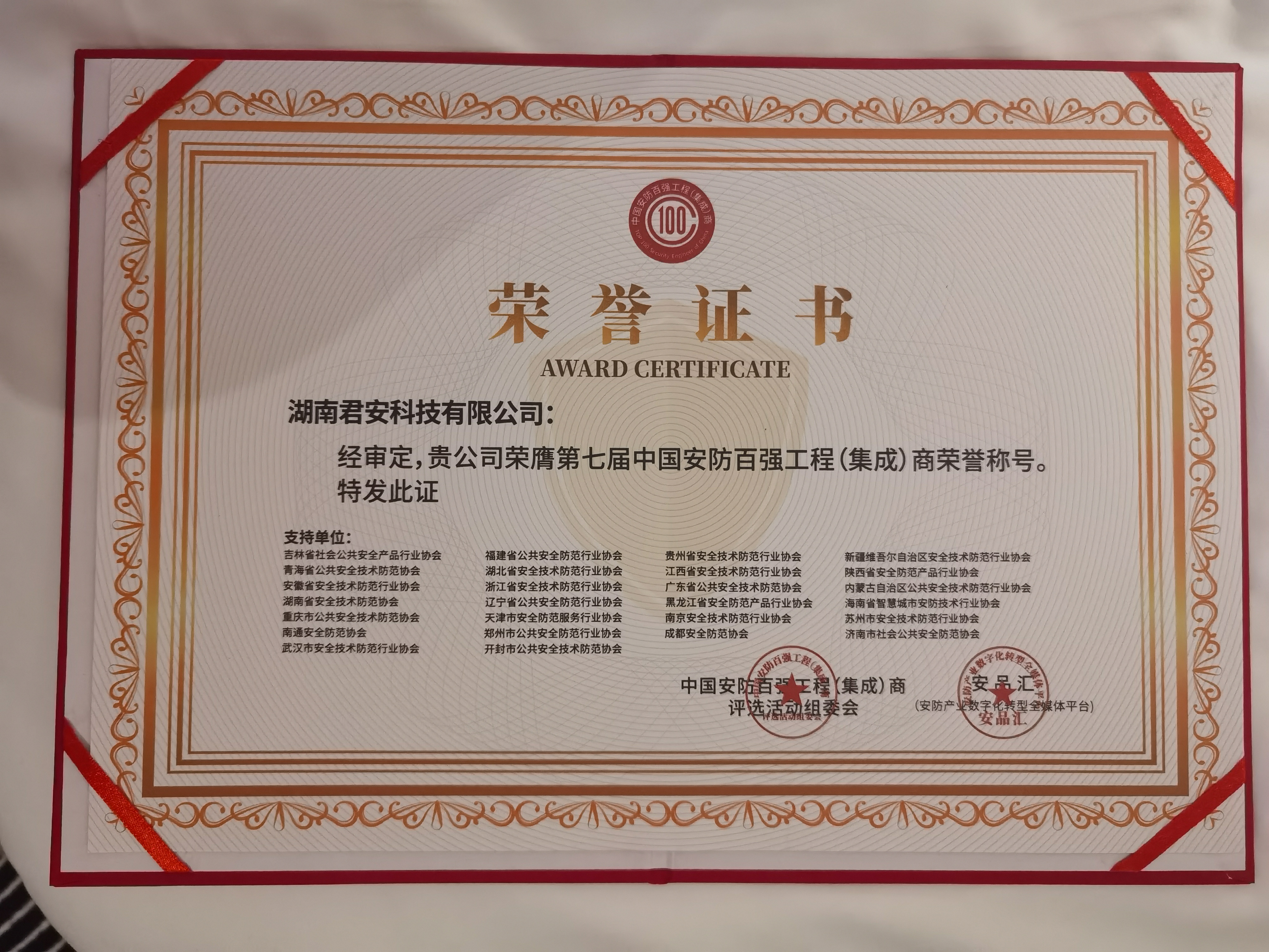[2025/4/17]喜訊!湖南君安科技獲頒“安防百?gòu)?qiáng)工程(集成…
